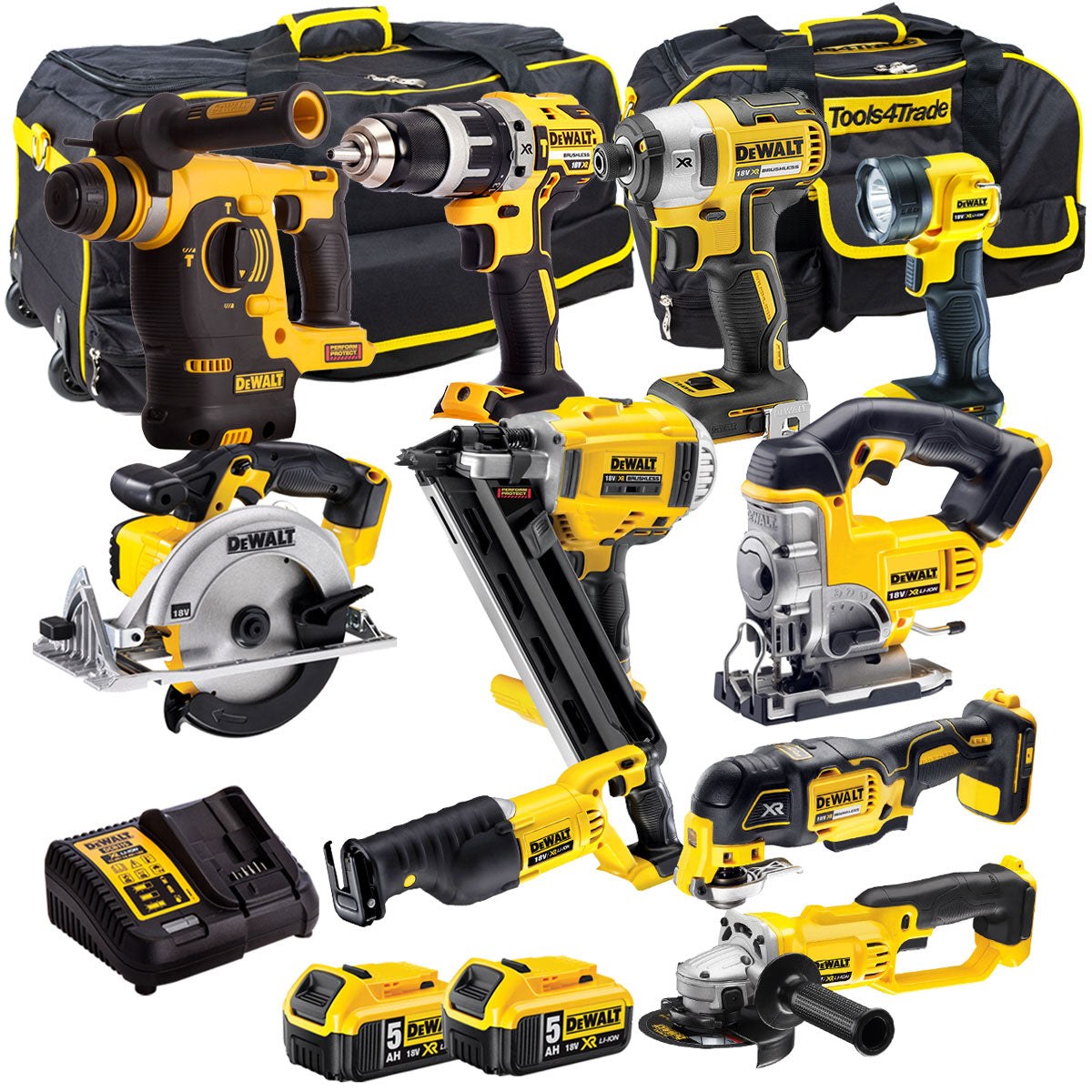 Dewalt 18V 10 Piece Power Tool Kit with 2 x 5.0Ah Batteries T4TKIT-992