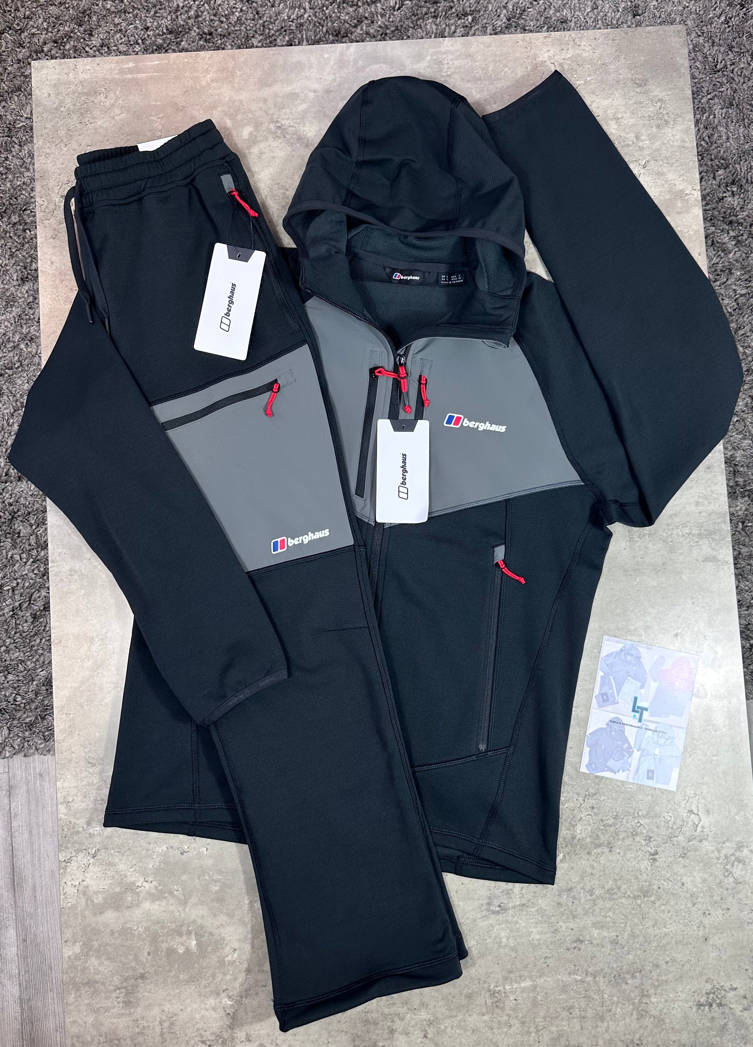 BERGthtHAUS FLEECE PLUS TRACKSUIT - BLACK/GREY/RED