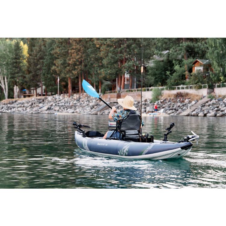 - Includes kayak, seat, fin, storage bag, Halkey-Roberts Valve adaptor, repair kit