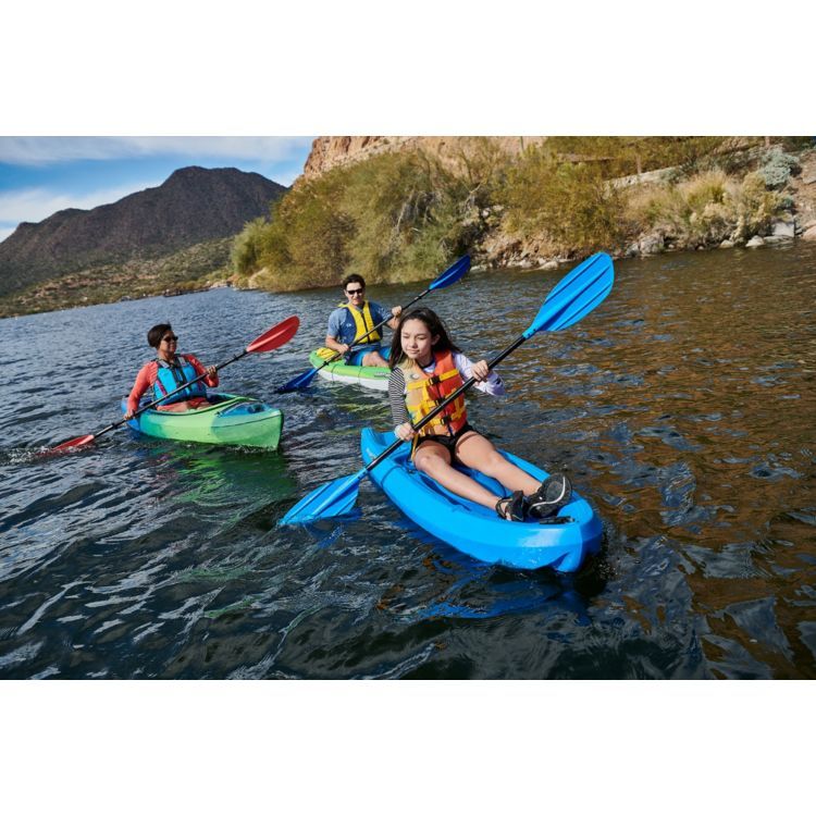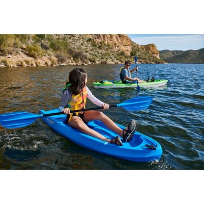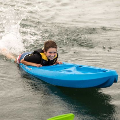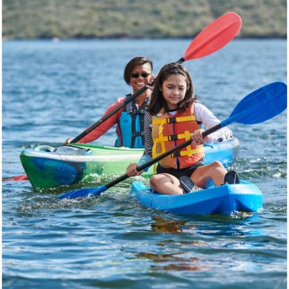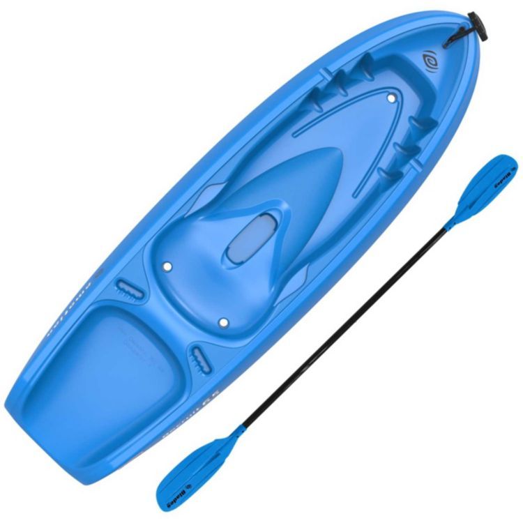 Teach them the ways of the water with the Emotion® Recruit Kayak and Paddle. Lightweight, yet durable, this boat boasts a lightweight construction with a swim-up deck for easy reentry. The SOT design is easy for him or her to use, while the paddle completes this ‘yak package.