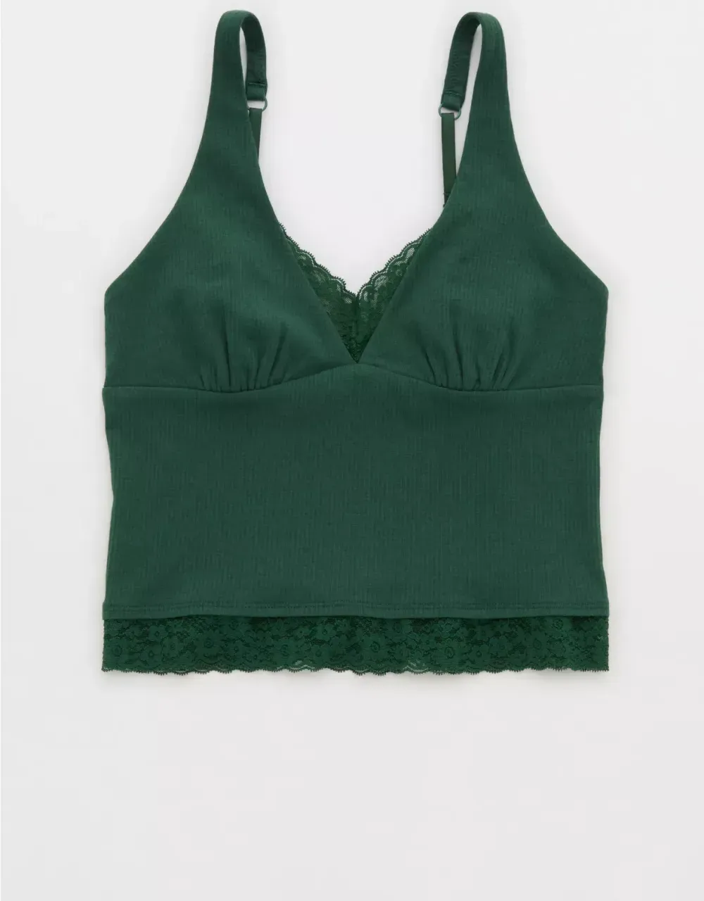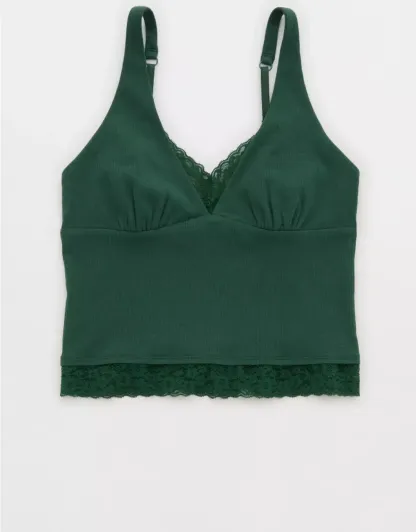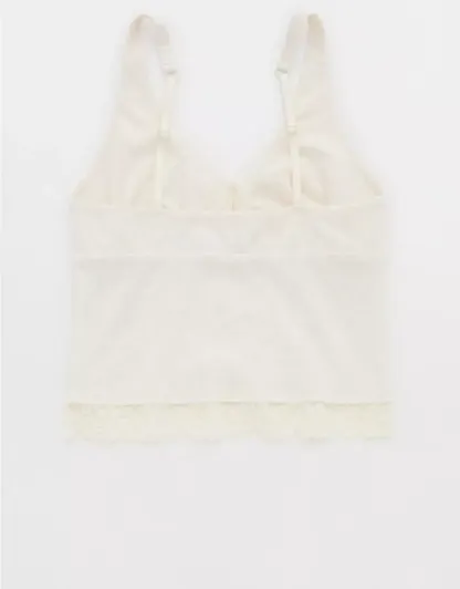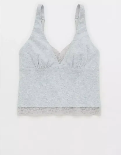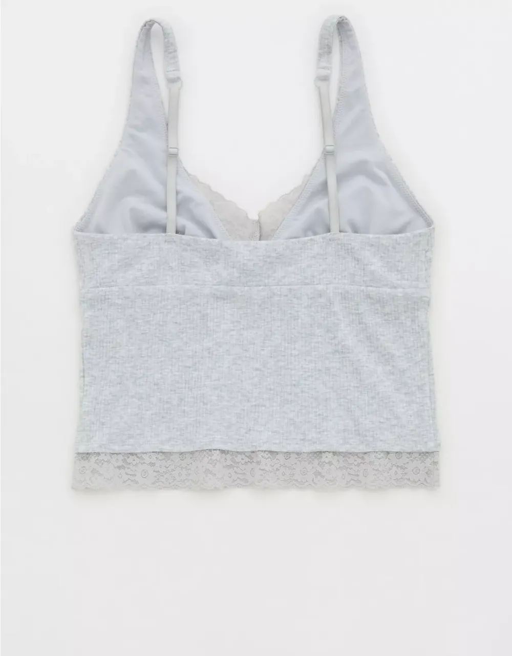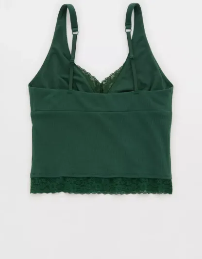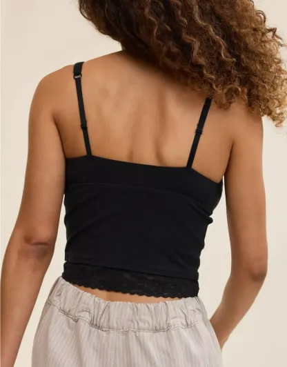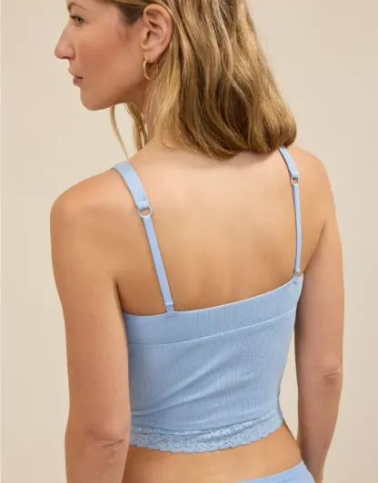 Textured, ribbed cotton with Vintage Lace trim in a plunge tank top silhouette.