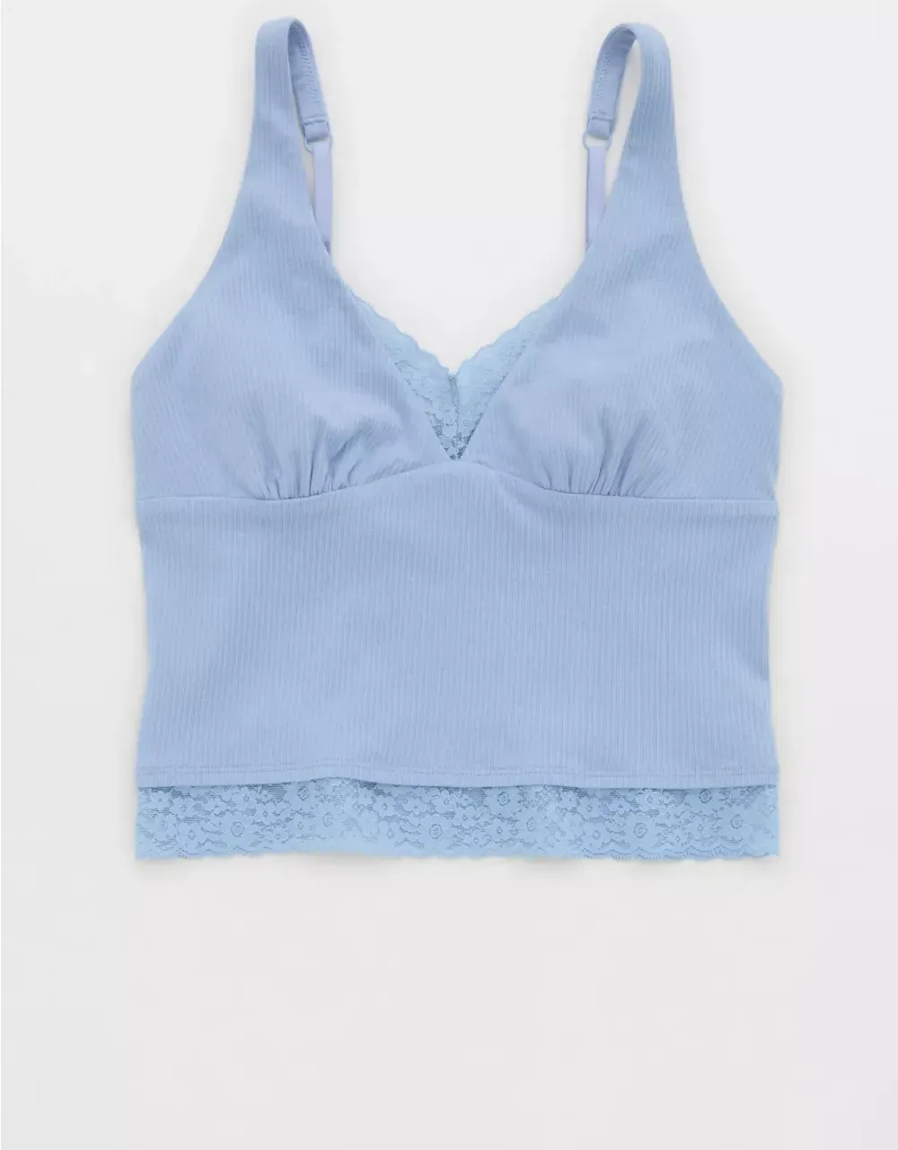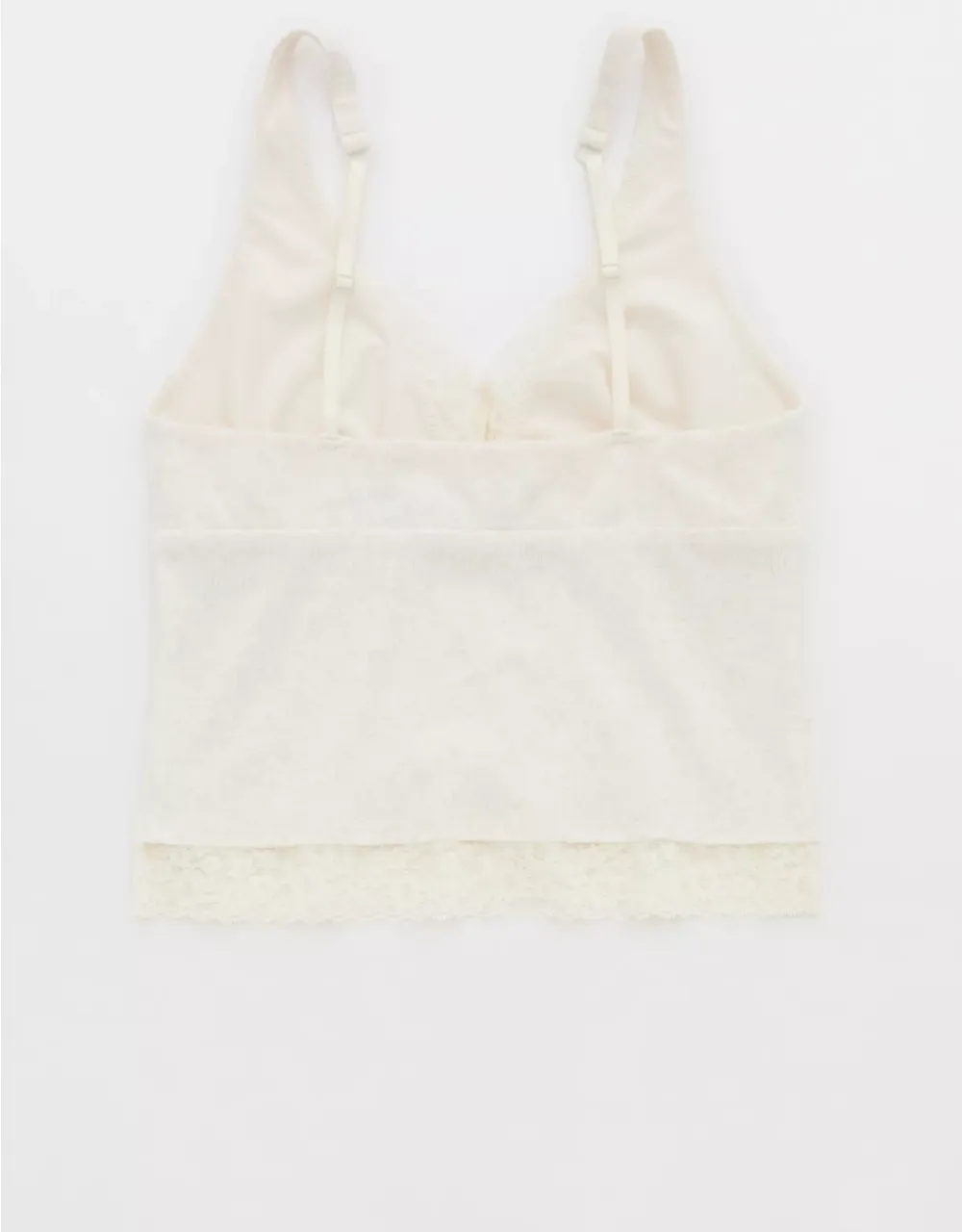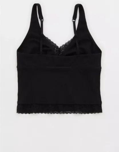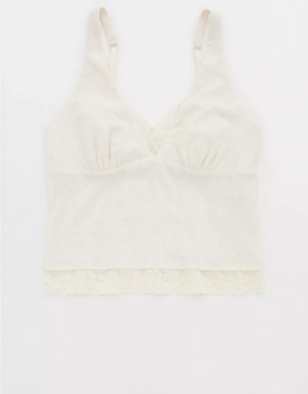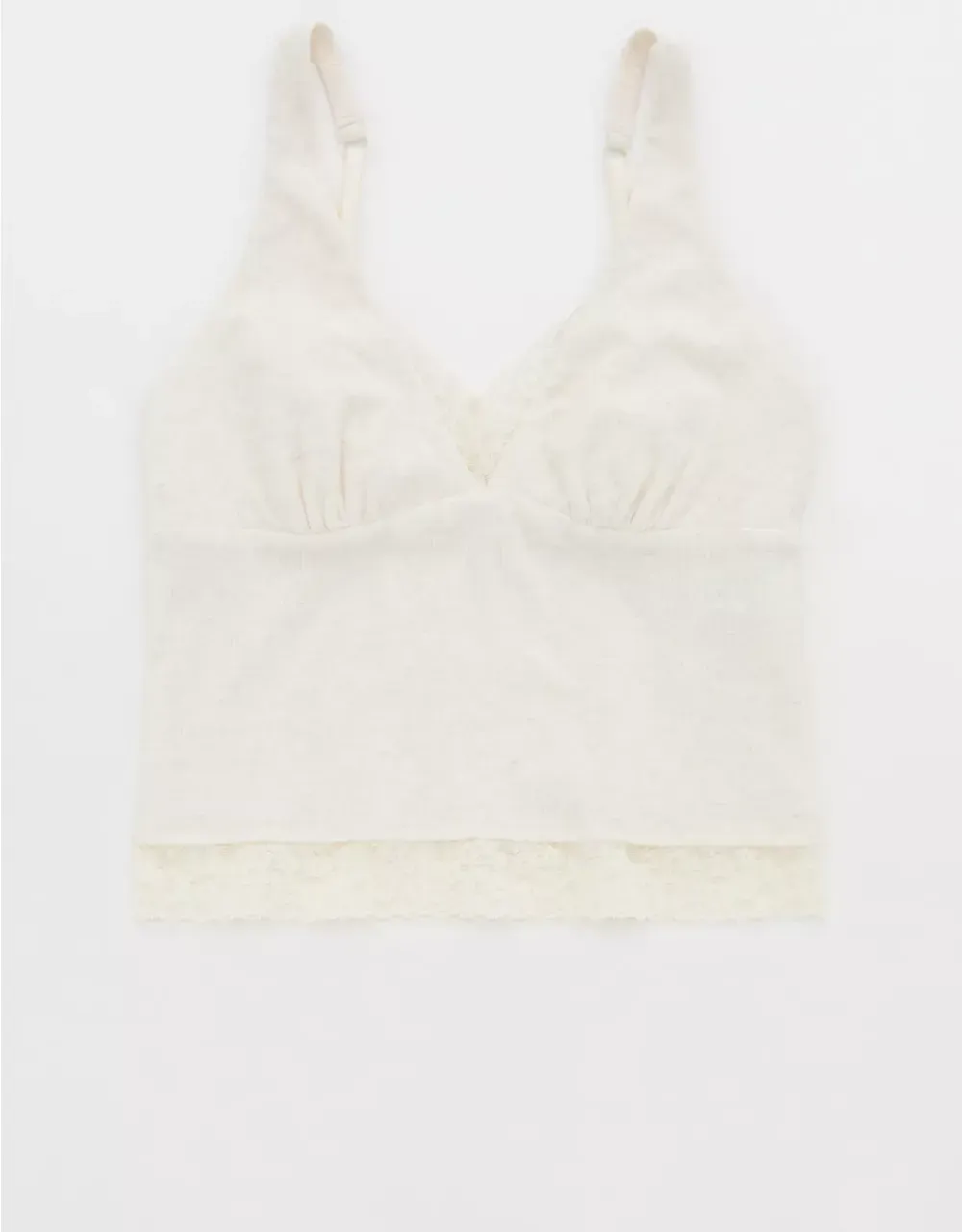 Textured, ribbed cotton with Vintage Lace trim in a plunge tank top silhouette.