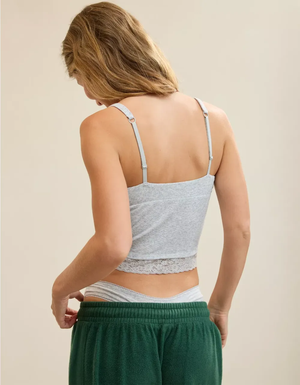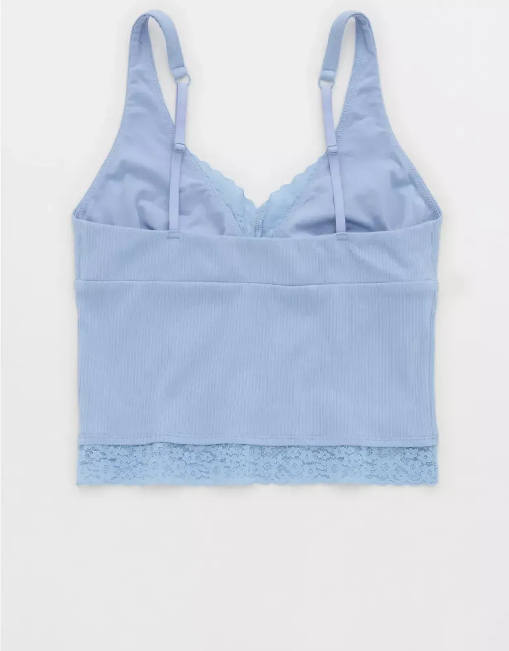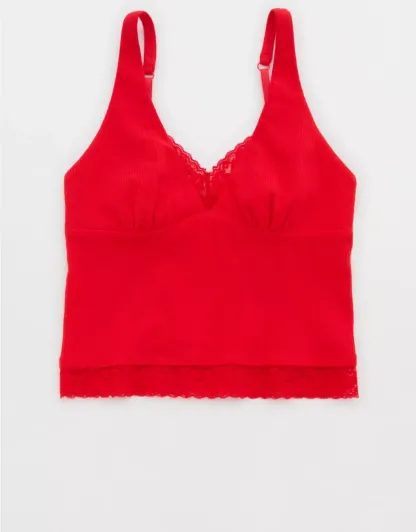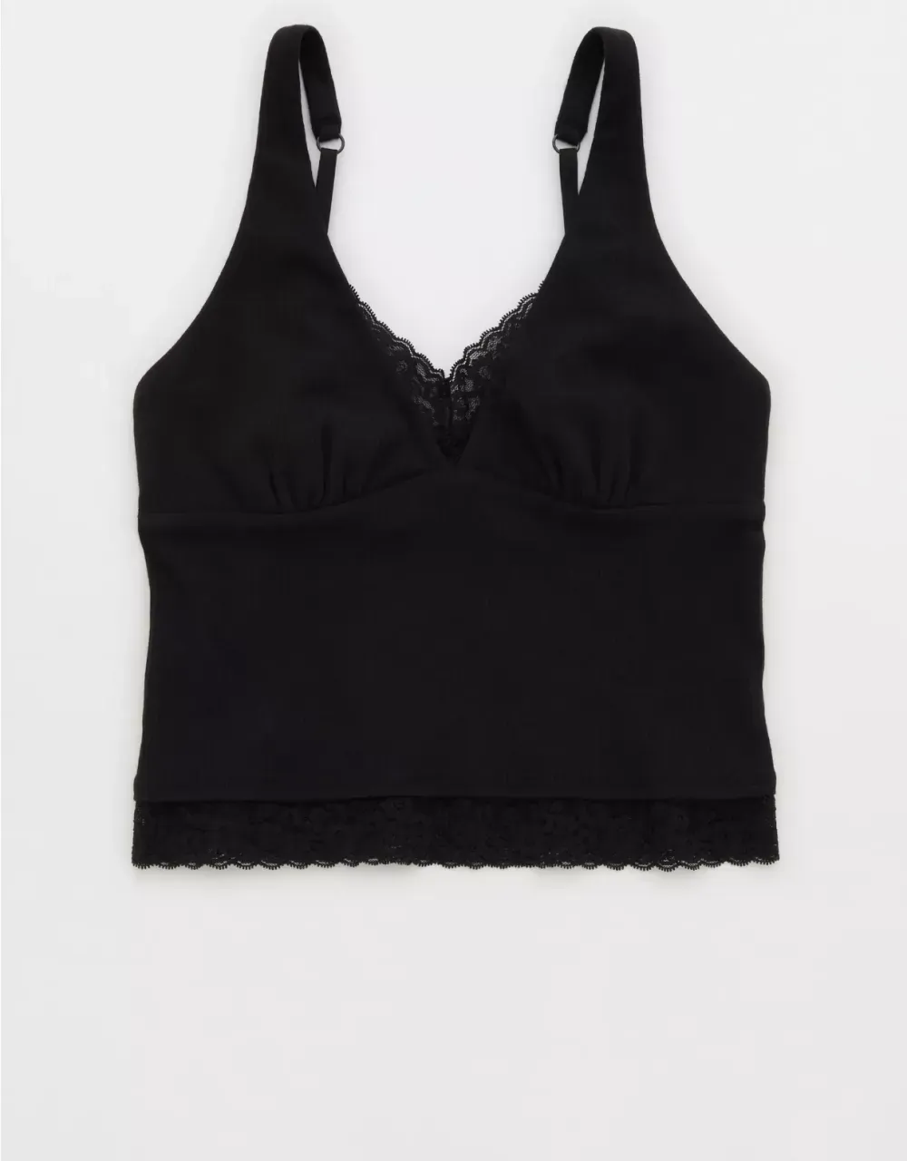 Textured, ribbed cotton with Vintage Lace trim in a plunge tank top silhouette.