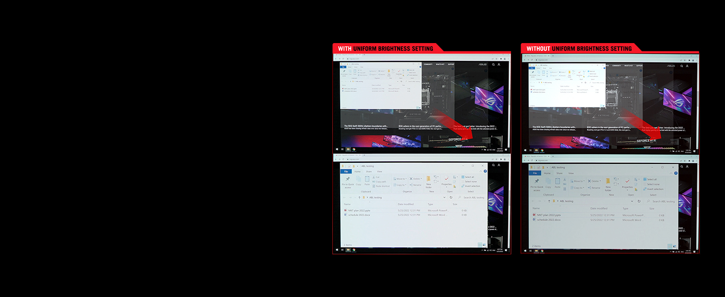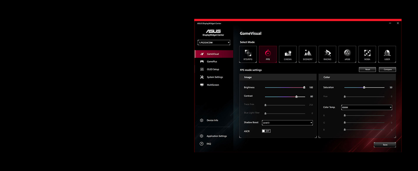 The all-new ASUS DisplayWidget Center software lets you easily change monitor settings and OLED-related functions via an intuitive interface, using a mouse ― so there’s no need to access the OSD menu.