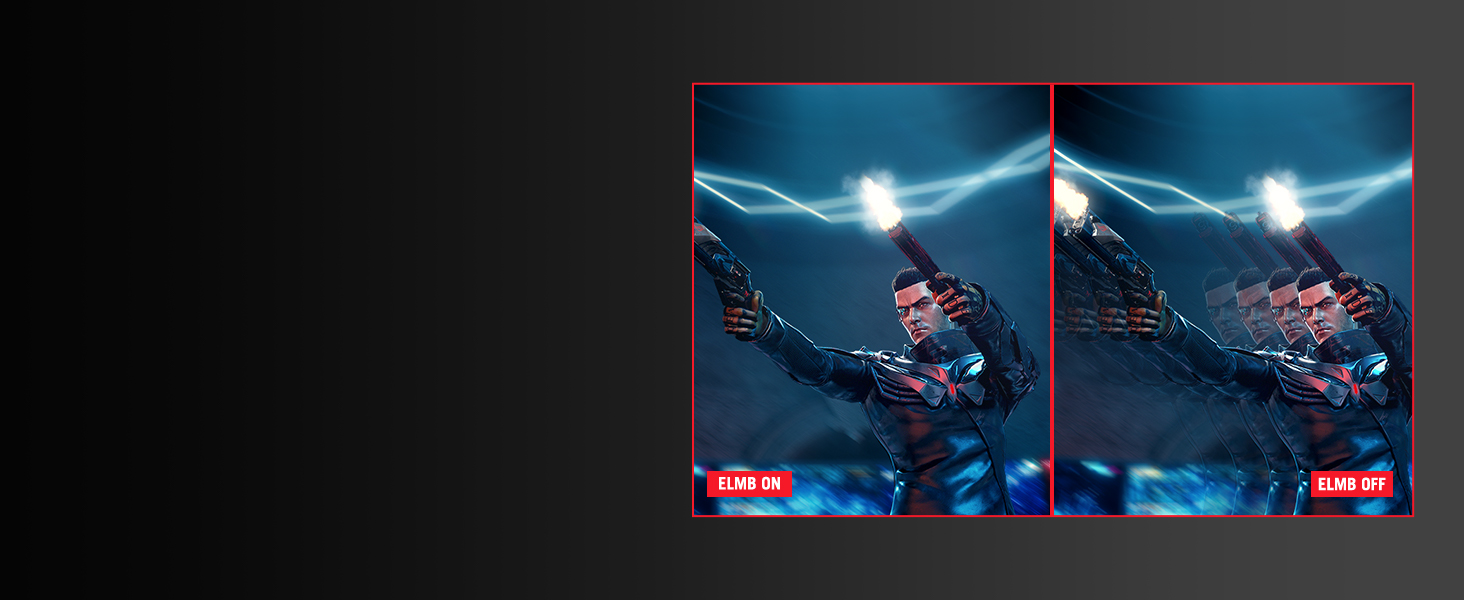 Exclusive ASUS Extreme Low Motion Blue (ELMB) technology further reduces ghosting and motion blur.