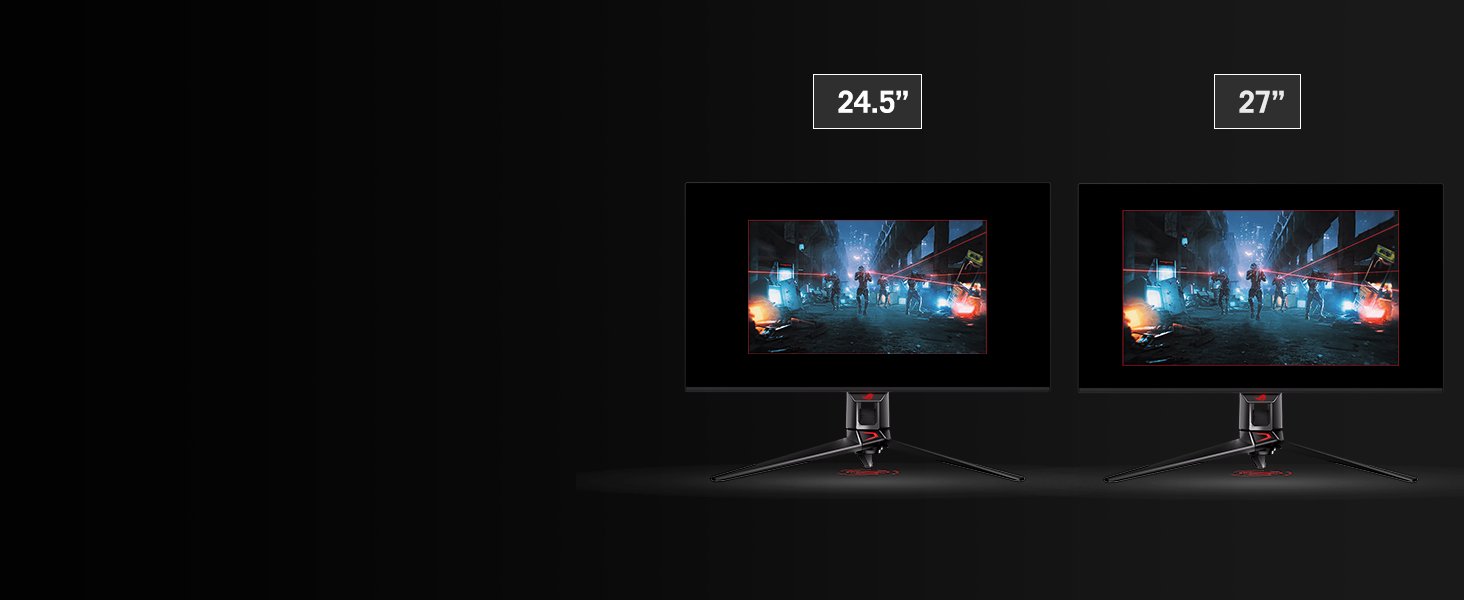 If you prefer playing on a smaller monitor, the PG32UCDM also supports a range of aspect ratios, allowing you to choose between 24.5” (esports mode) and 27” imagery.