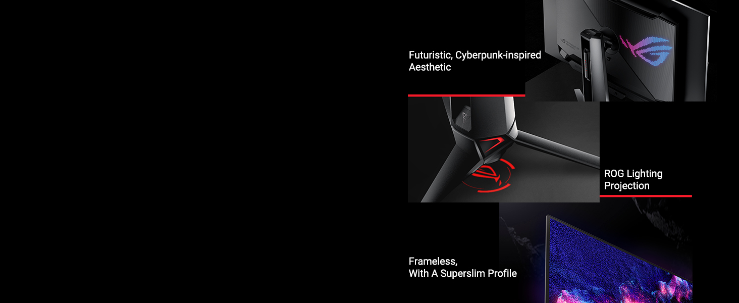 The PG32UCDM is the epitome of premium ROG design, boasting cyberpunk elements and a frameless panel for maximum immersion. It also includes the ROG wall mount kit for more versatile gaming setups.